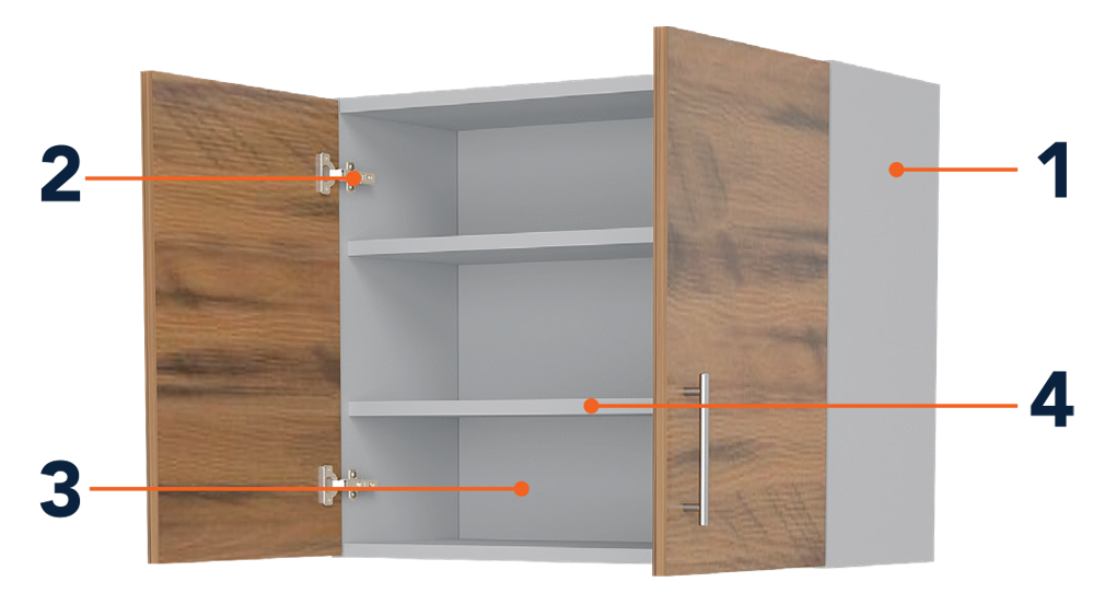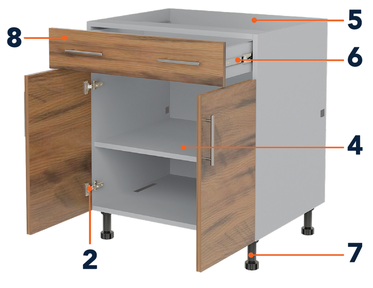 | 3 | Back Panels | Wall cabinets are constructed with a ¾" thick full-height back for strength & durability |